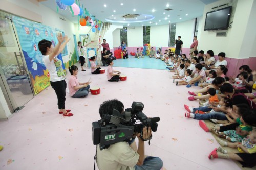 嬰智貝佳早教中心老師擊鼓表演